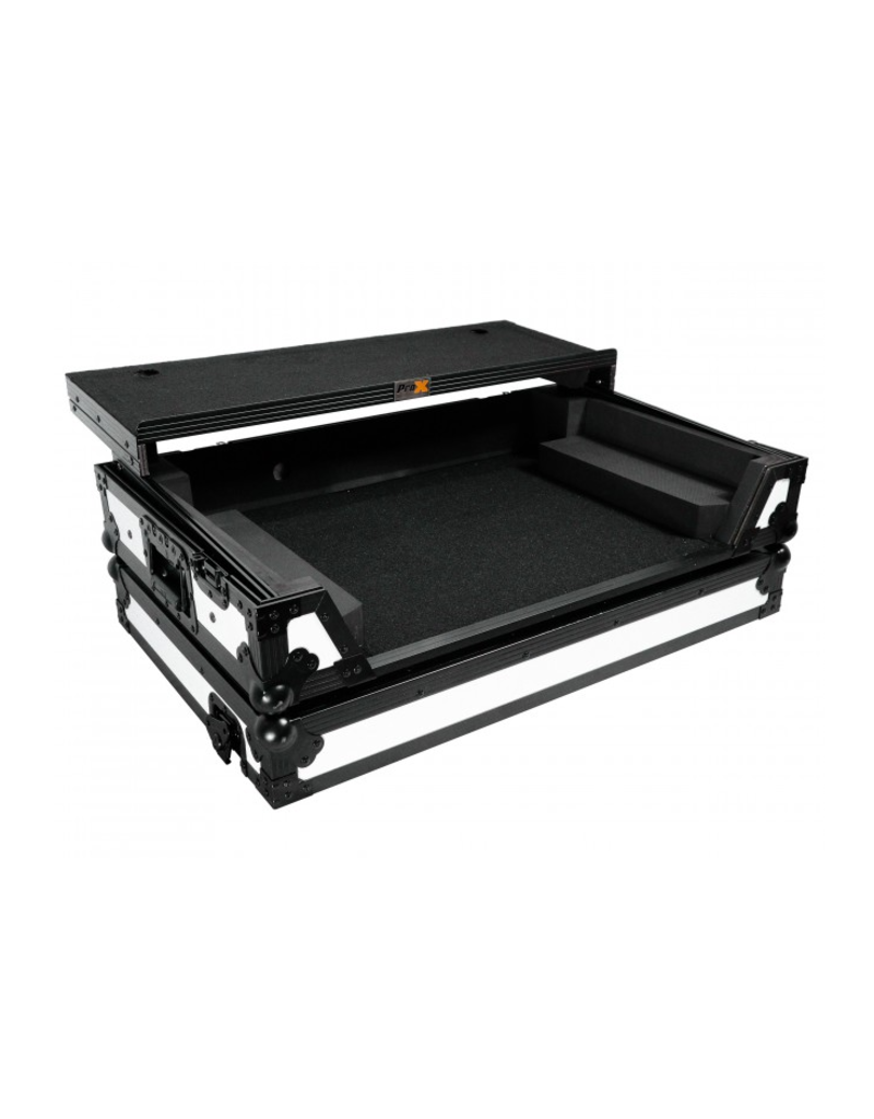 ProX XS-DDJFLX10WLTWH ATA Flight Style Road Case For Pioneer DDJ-FLX10 or DDJ-GRV6 DJ Controller with Laptop Shelf 1U Rack Space and Wheels White Black Finish (XS-DDJFLX10WLTWH)